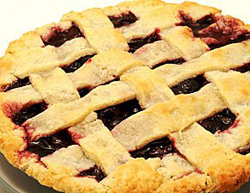 | Zgnetemo krhko testo in ga za pol ure damo v hladilnik. Medtem odcedimo višnjev kompot. 2/3 testa razvaljamo, prepikamo z vilicami in ga položimo v pakač za pite, namazan z maslom in posut z moko. Preostalo 1/3 testa razvaljamo in narežemo na trakove. Po testu na debelo namažemo marelično marmelado in posujemo z višnjami. Po vrhu naredimo mrežo iz razrezanih trakov. Pito pečemo 45 minut na 180 stopinj. |